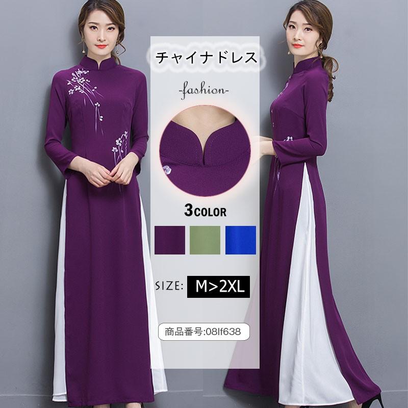 チャイナドレス ベトナム アオザイ ロング ワンピース 長袖 文昌堂 ポンパレモール